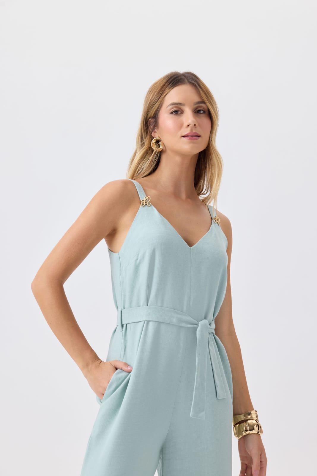 Detalhes: Cinto lenço do mesmo tecido e metais dourados.